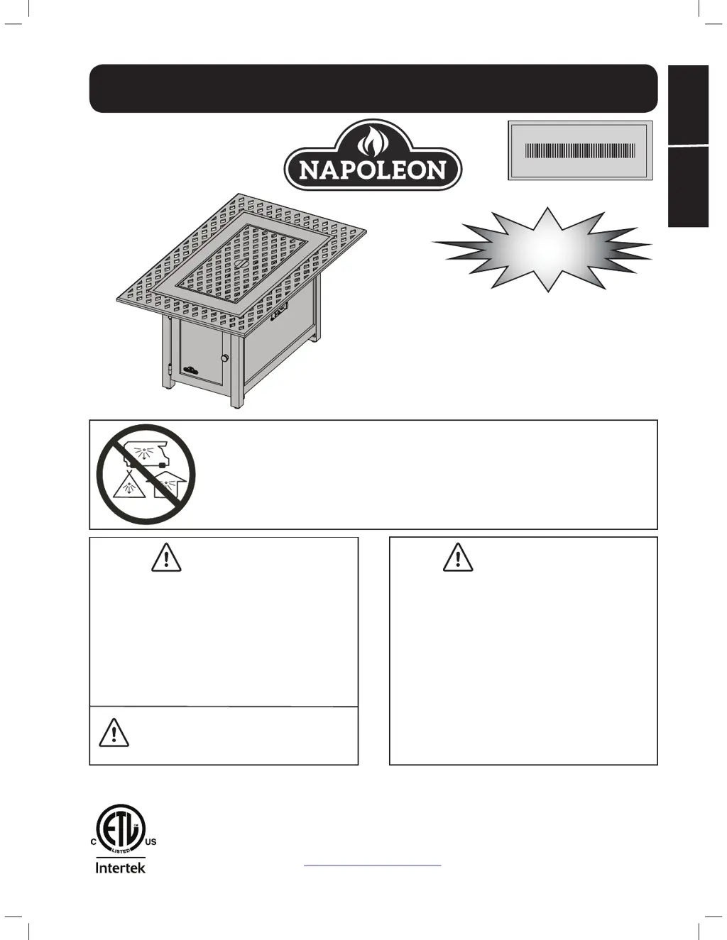 If the burner of your Napoleon Outdoor Fireplace won't stay lit after releasing the control knob, it could be due to several reasons. First, ensure you hold the knob for a full 30 seconds after ignition to allow the thermocouple to heat up sufficiently. Wind can also cause the burner to extinguish if winds are greater than 10mph (16km/h); consider relocating the unit or using it in calmer conditions. Check for any obstructions like glass or debris in the ignition area, particularly around the thermocouple. Clean the thermocouple and its connection to the valve, ensuring it's properly tightened. If problems persist, the thermocouple or valve may need replacement.