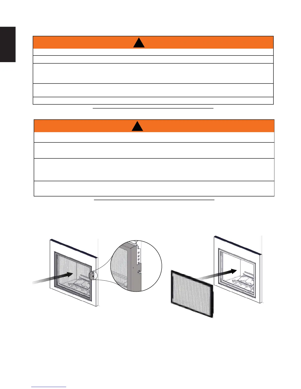 and must be installed. Before the glass door can be removed, the surround with safety screen must be