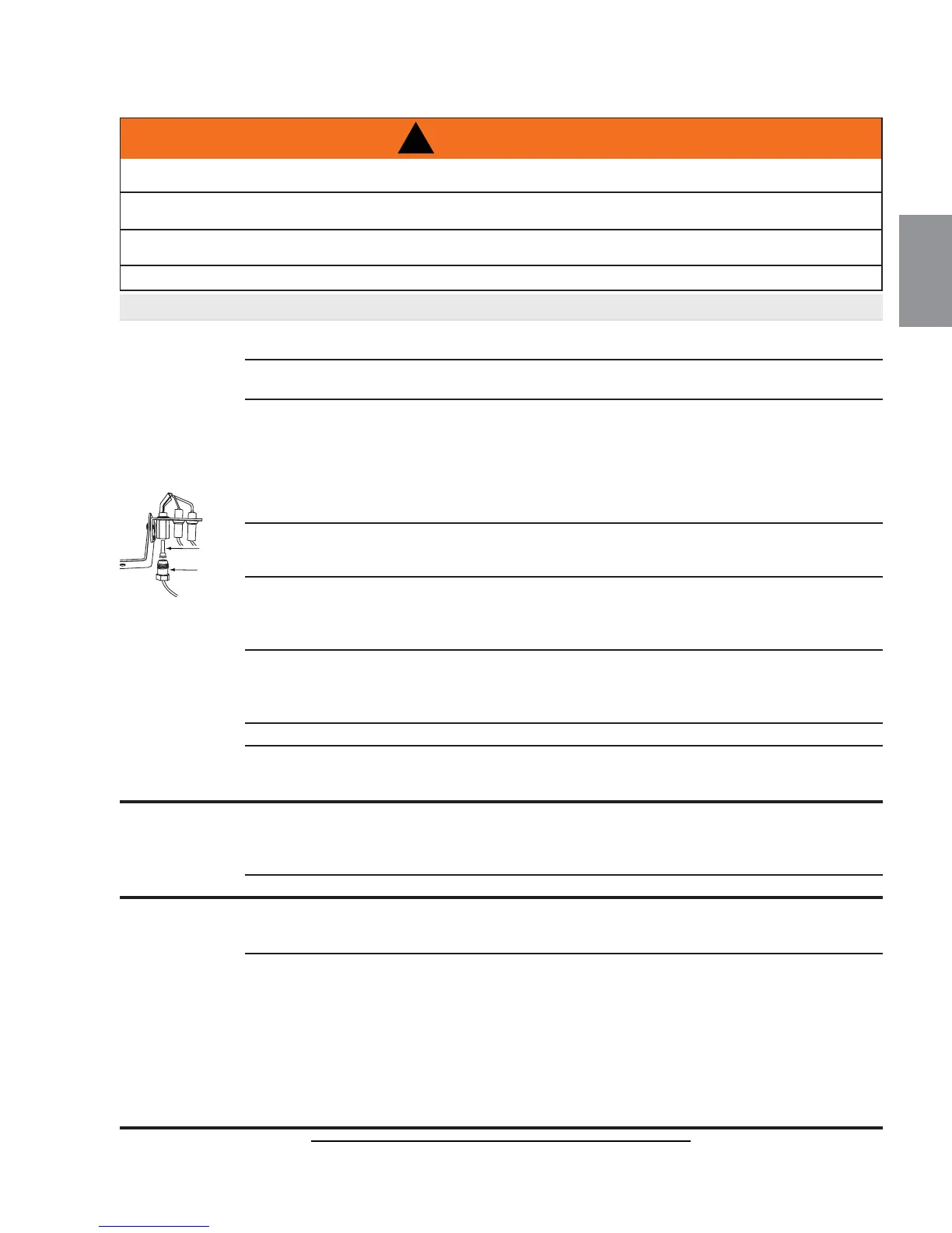 - La longueur de l’étincelle de l’allumeur à la veilleuse devrait être de 0,125” (3.2mm).