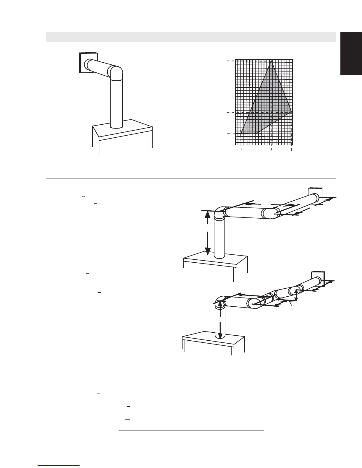 For vent configurations requiring more than one 90° elbow, the following formulas apply: