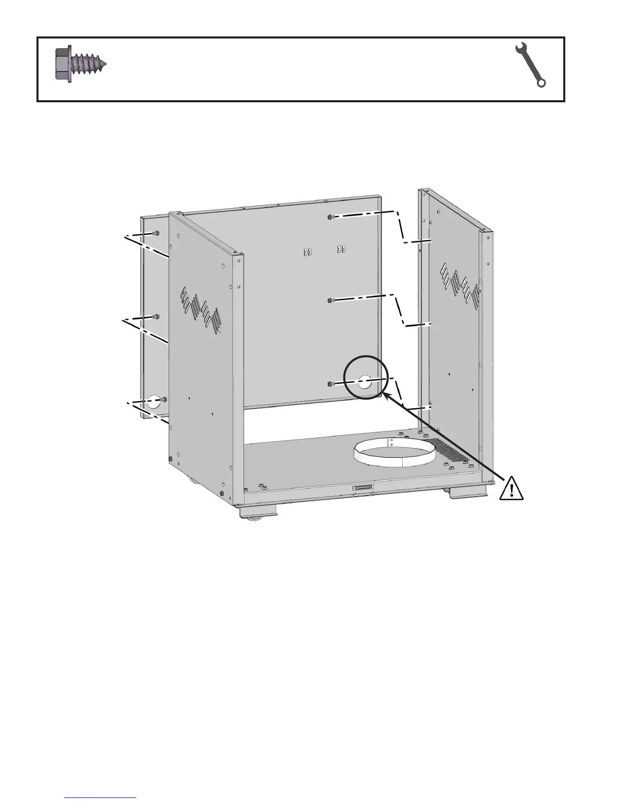 Fasten using (6) #14 x 1/2” screws, three on each side.