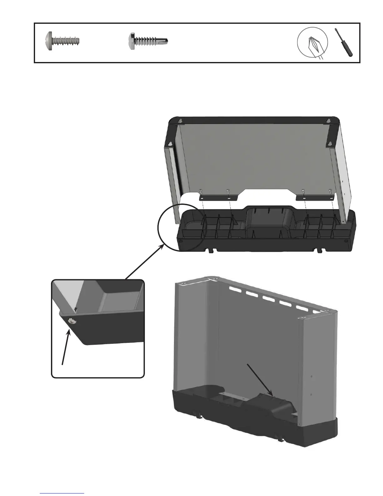 cap to the side shelf using (4) #8 x 1/2” screws per shelf. On the underside of the side shelf fasten the end cap using (2) #8 x 5/8”
