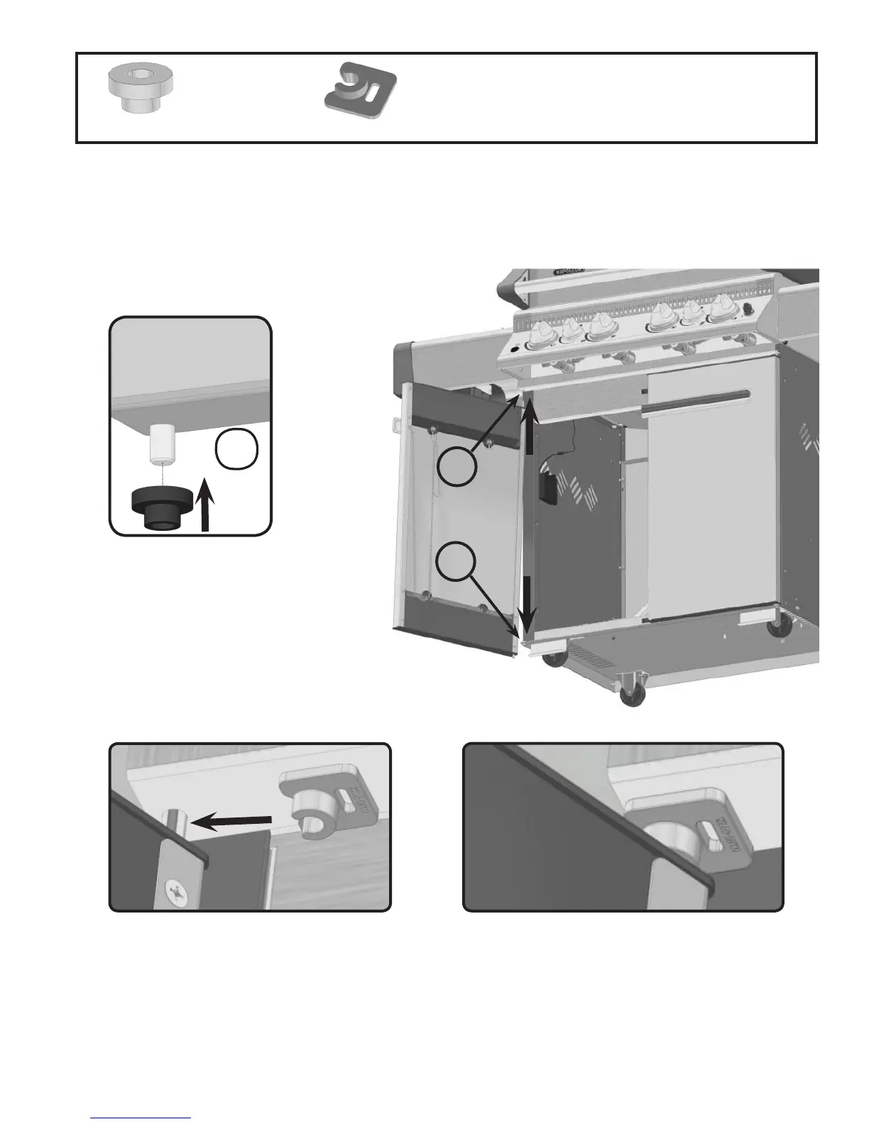 the front cabinet support and then lower the door ng bushing into the hole in the boom shelf. Once installed, snap