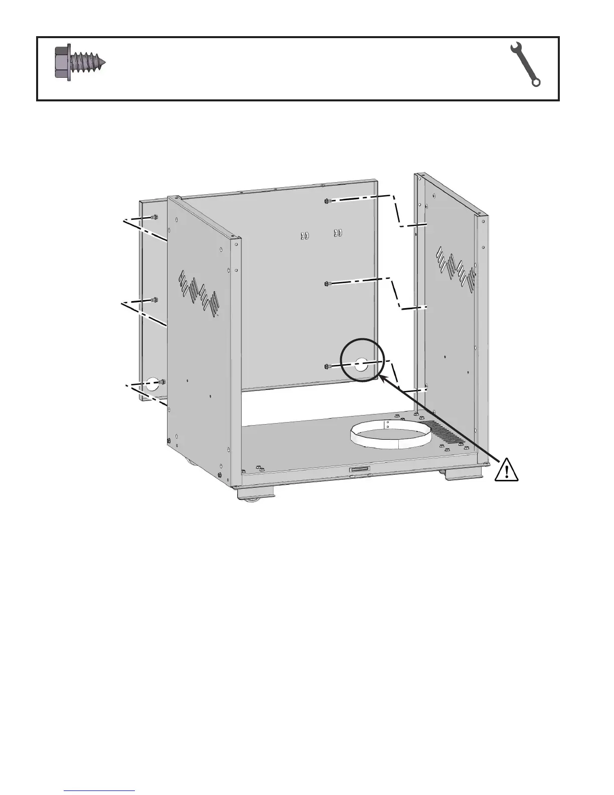 situe dans le coin inférieur droit comme illustré. Fixez en ulisant six (6) vis #14 x 1/2”, trois de chaque côté.