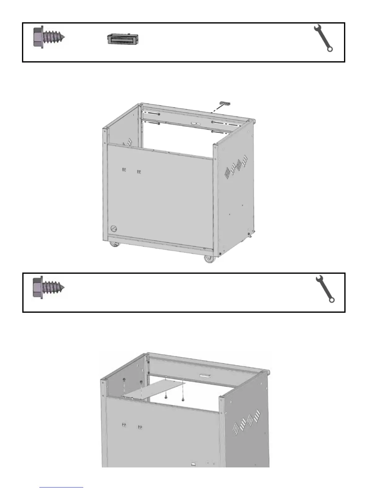 Fasten top rail assembly to the front of side panels using (4) #14 x 1/2” screws. For ease of installaon start all screws