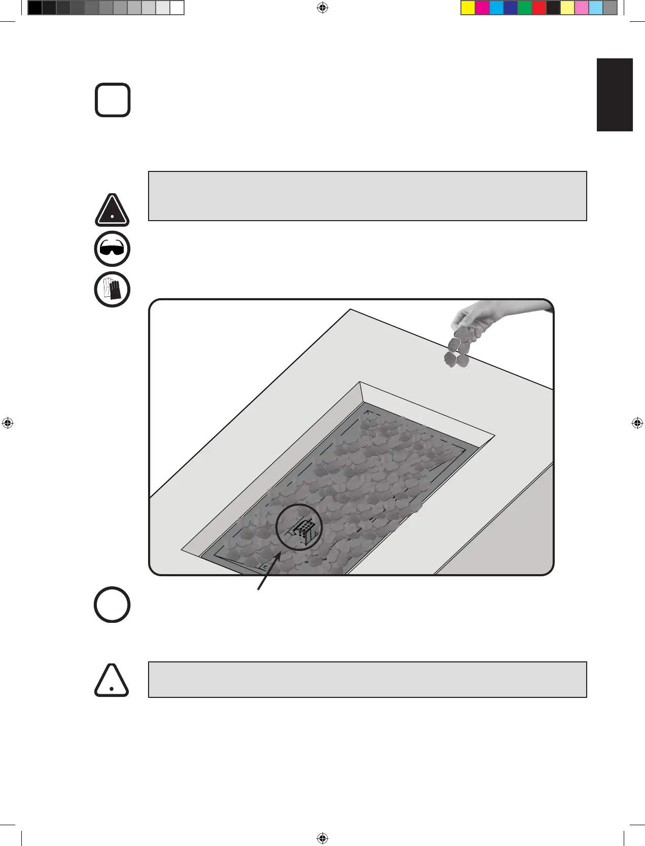 CAUTION! Lava rocks may react to heat by throwing fragments of rock. Be sure to condion the