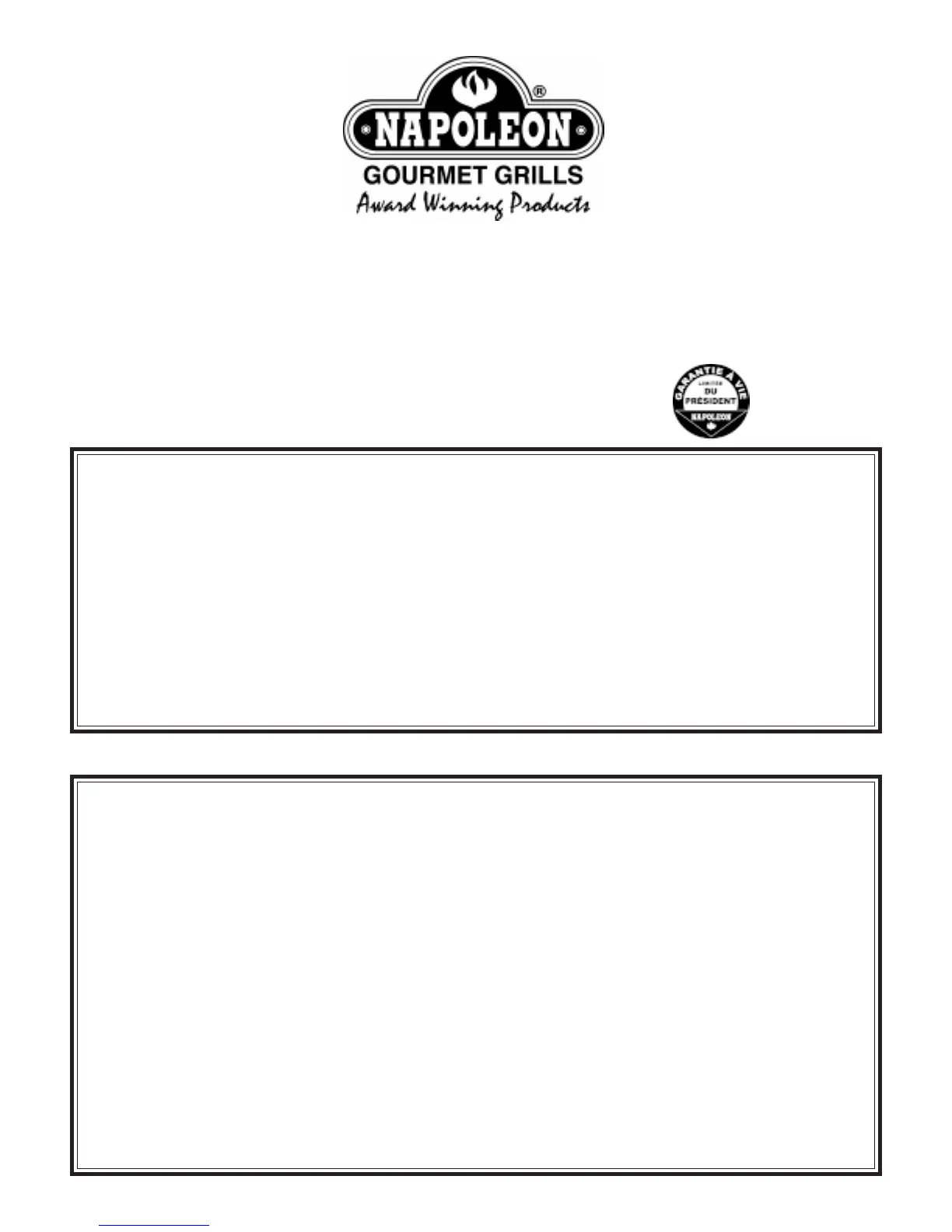 être retournée dans les quatorze jours pour enregistrer la garantie ou vous pouvez vous enregistrer en ligne au : www.napoleongrills.com.
