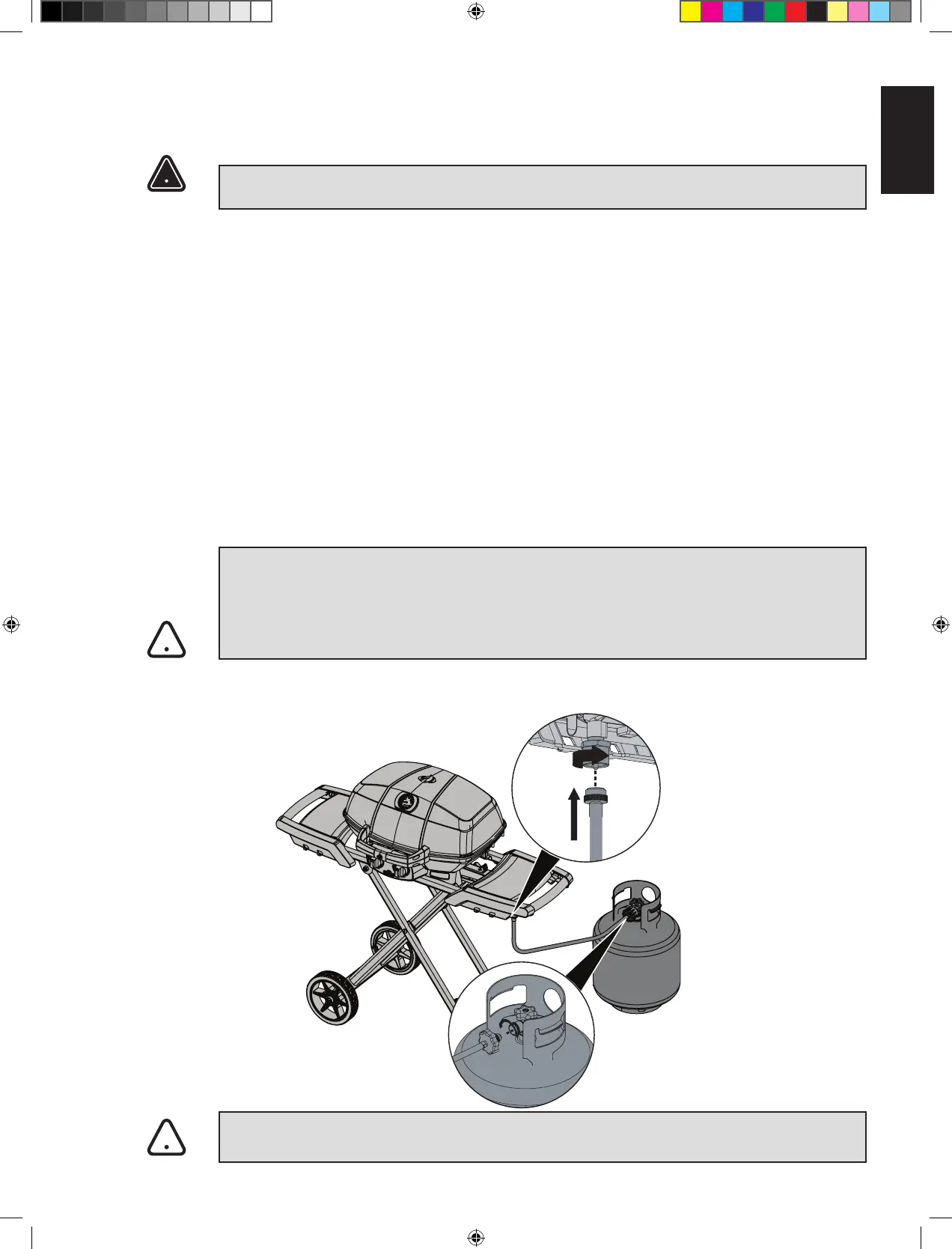 WARNING! Use only the pressure regulator and hose assembly provided with this barbecue.