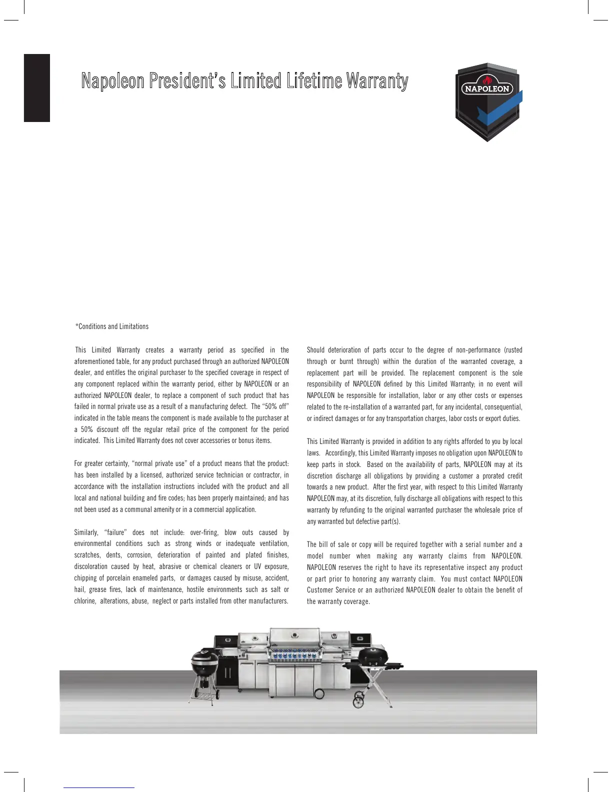 Napoleon President’s Limited Lifetime Warranty