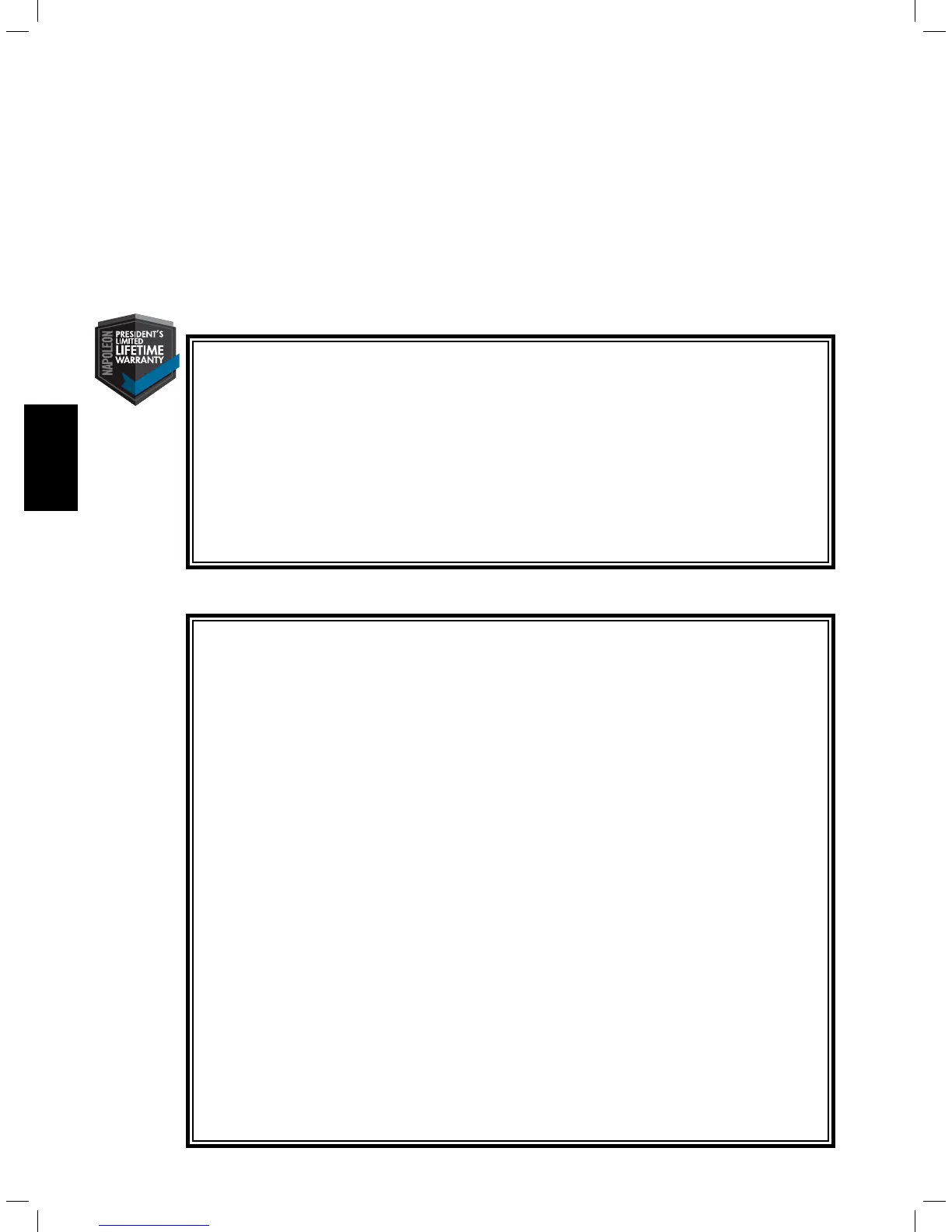 Nach dem ersten Jahr ist NAPOLEON gemäß der President’s Limited Lifeme Warranty befugt, sich nach eigenem Ermessen