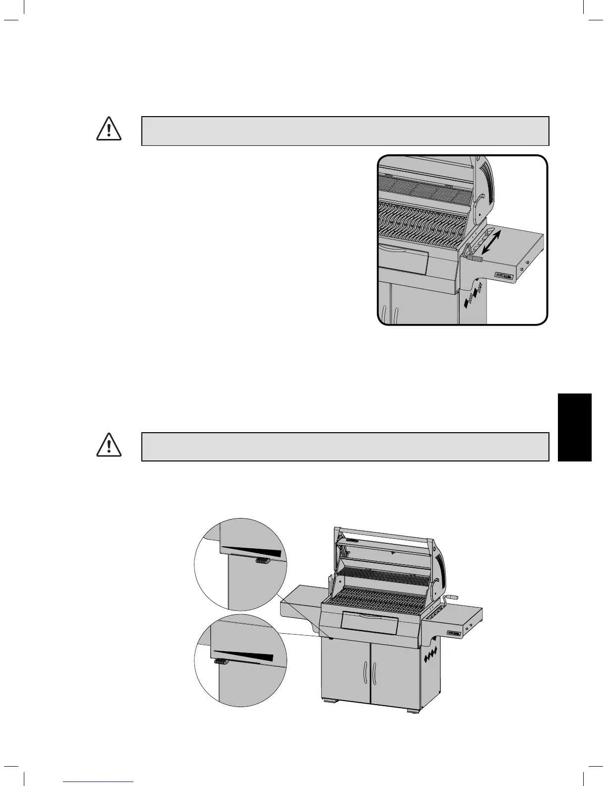 VARNING! Placera aldrig händerna på insidan av grillen under den du justerar höjden på