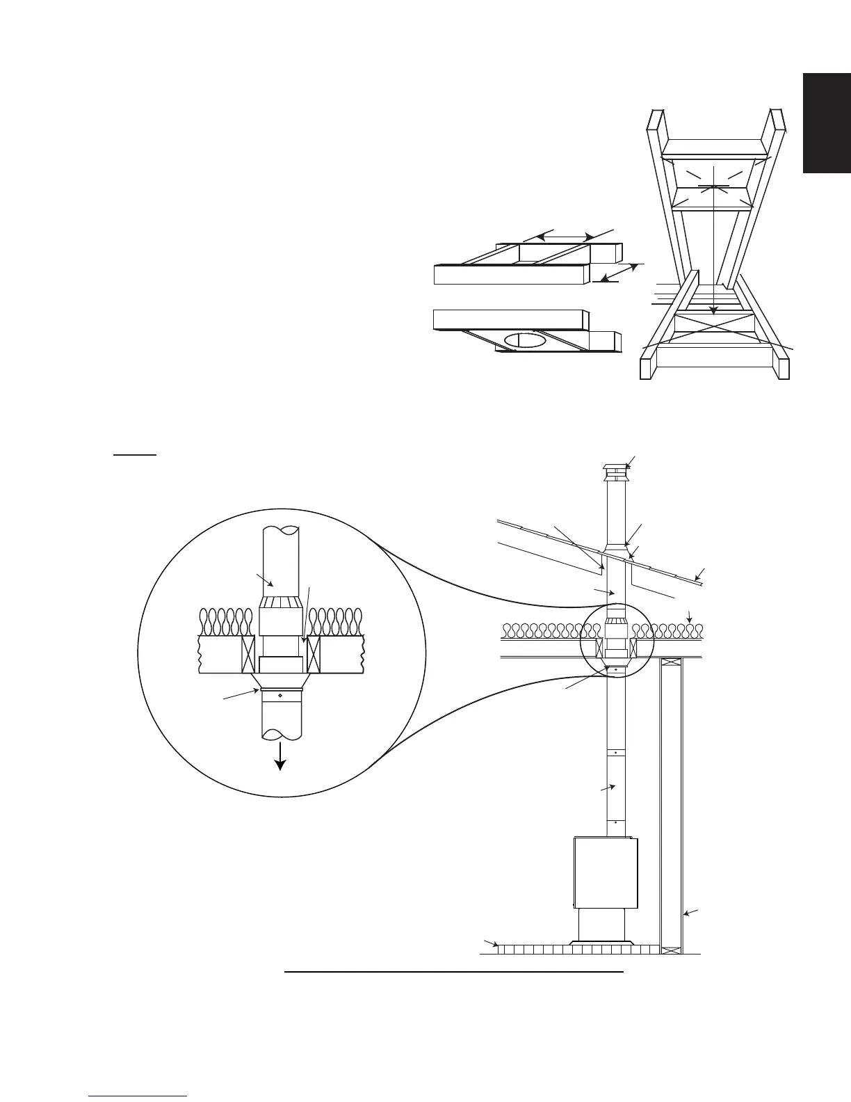NOTE: The chimney must be supported at the ceiling or roof so that it’s