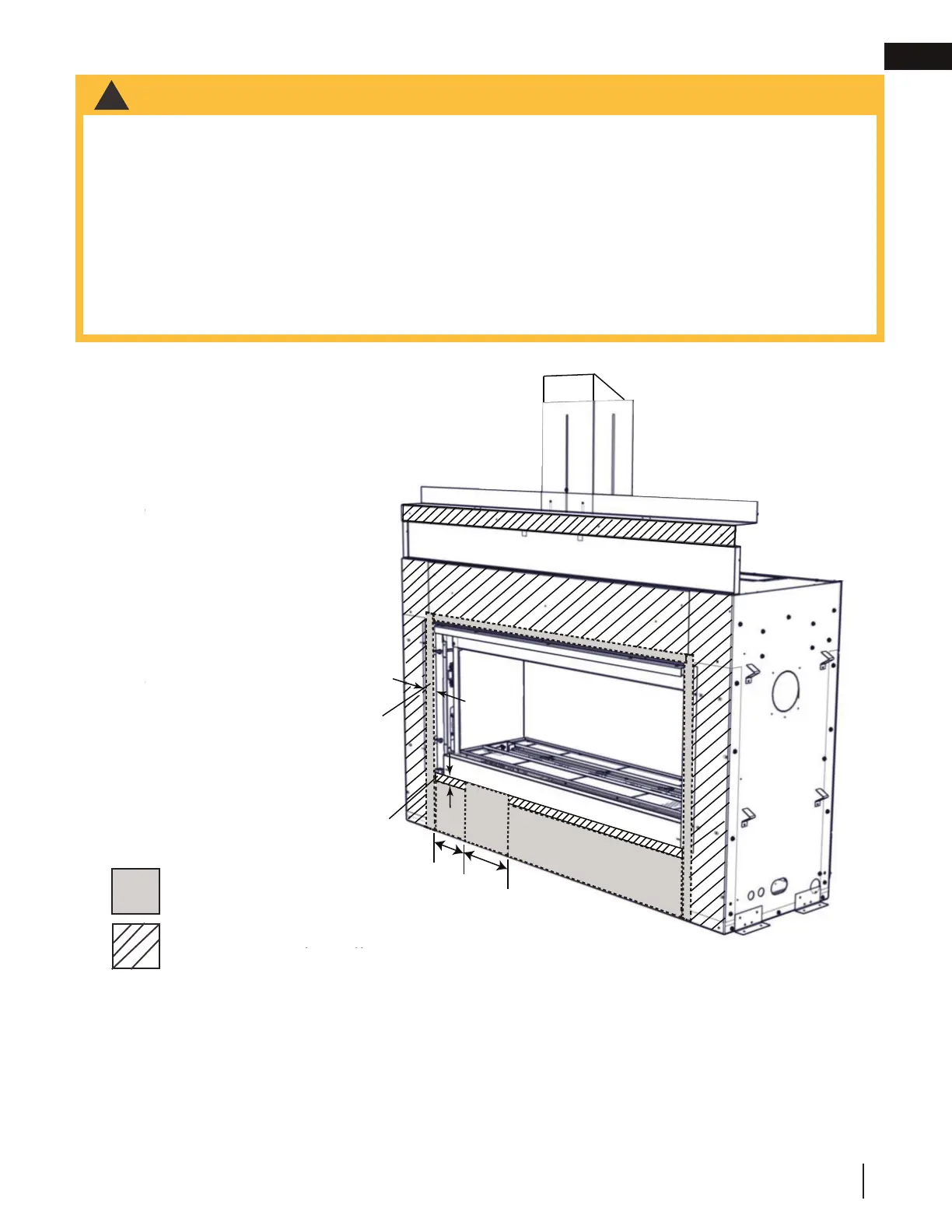 • The front of the appliance must be fi nished with any non-combustible materials such as brick, marble, granite,