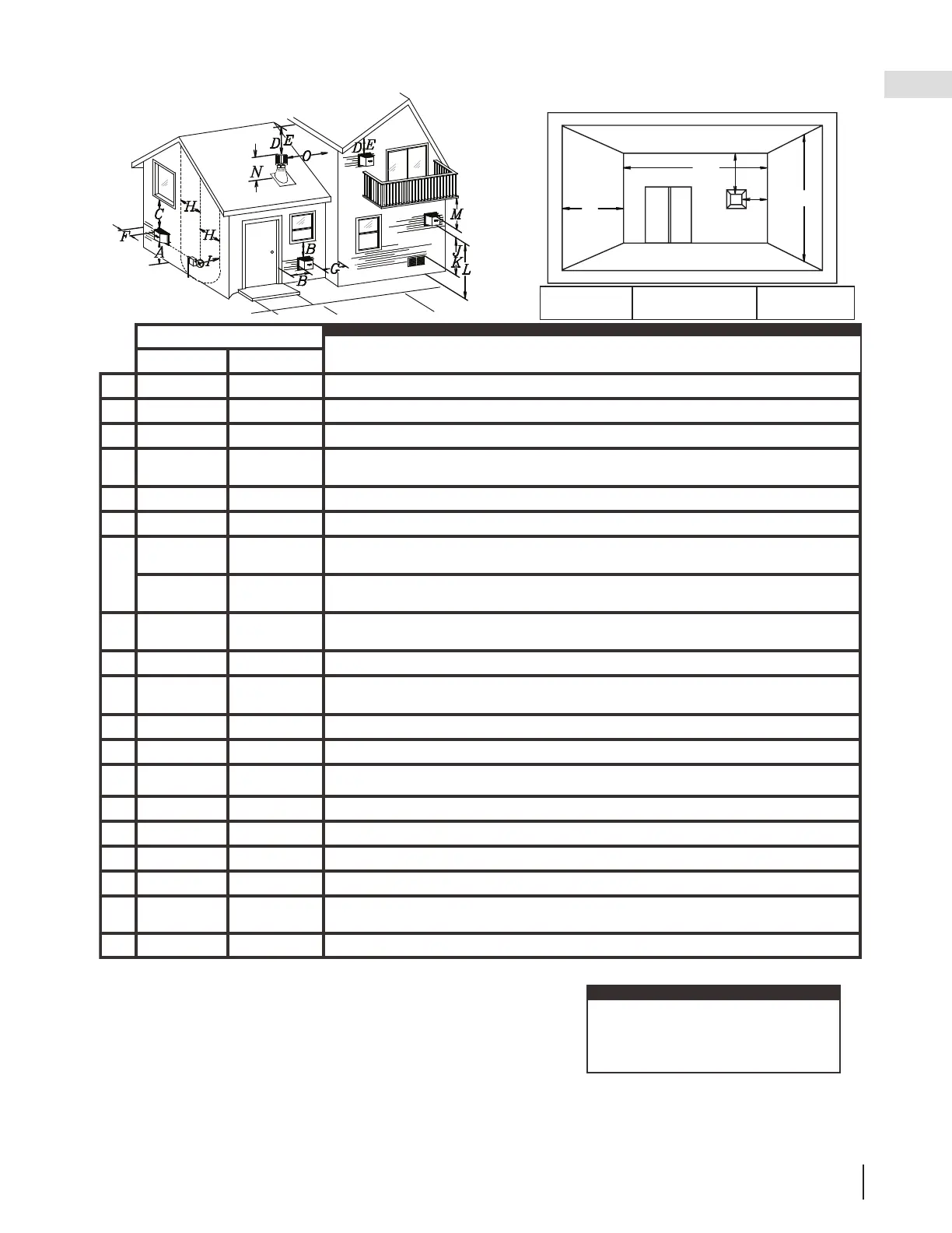 0” (0mm) 0” (0mm) Dégagement des murs faisant coin extérieur.