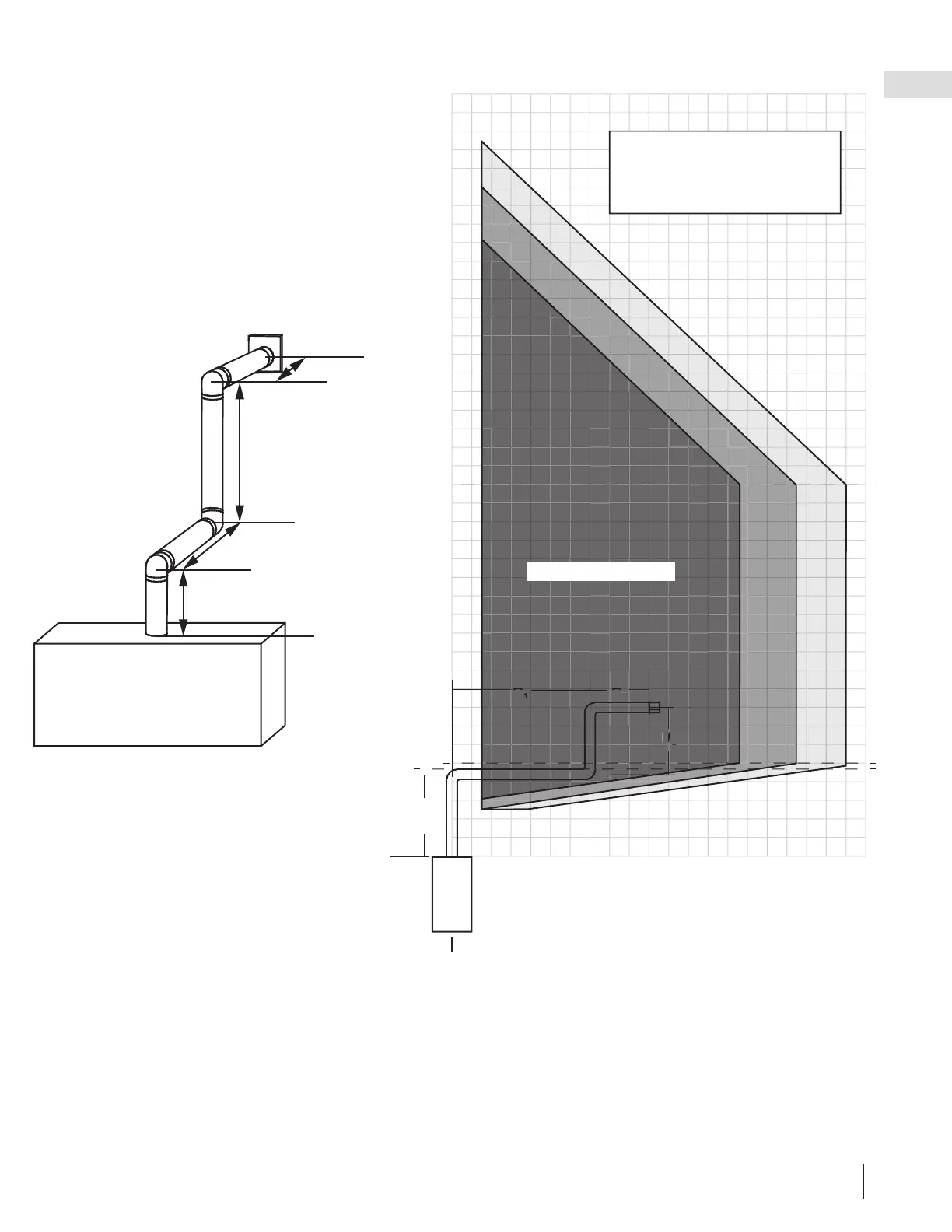 This example represents a vent that has a maximum of three 90º elbows, a combined horizontal vent length (H ) of