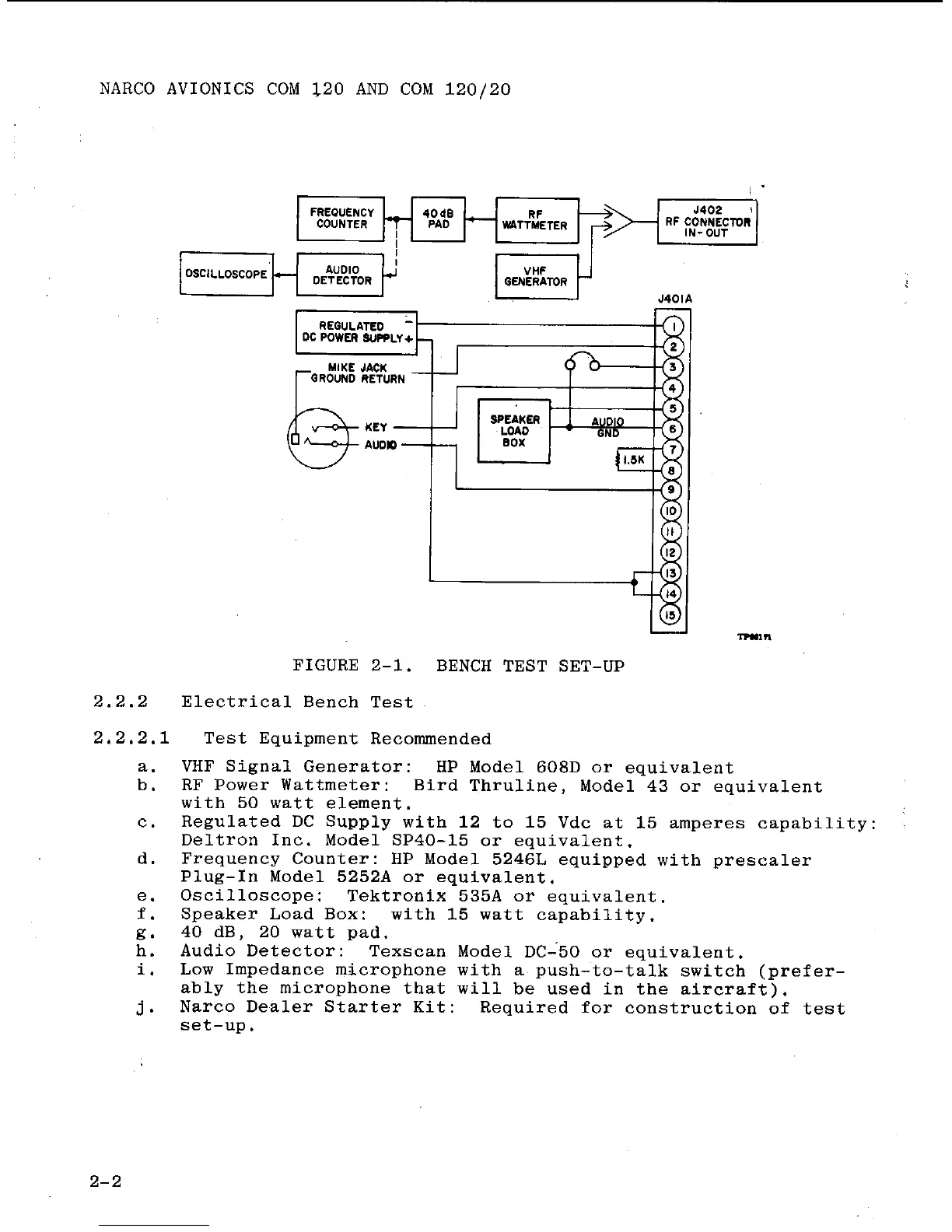 Narco Avionics COM 120 TSO - Electrical Bench Test Procedures; Test Equipment Recommended