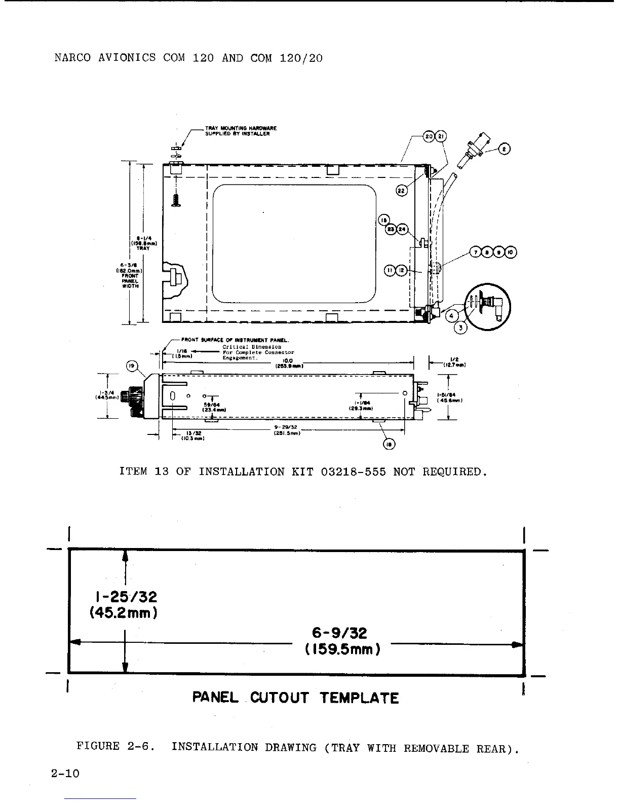 Narco Avionics COM 120 TSO - Installation Drawing (Tray with Removable Rear)