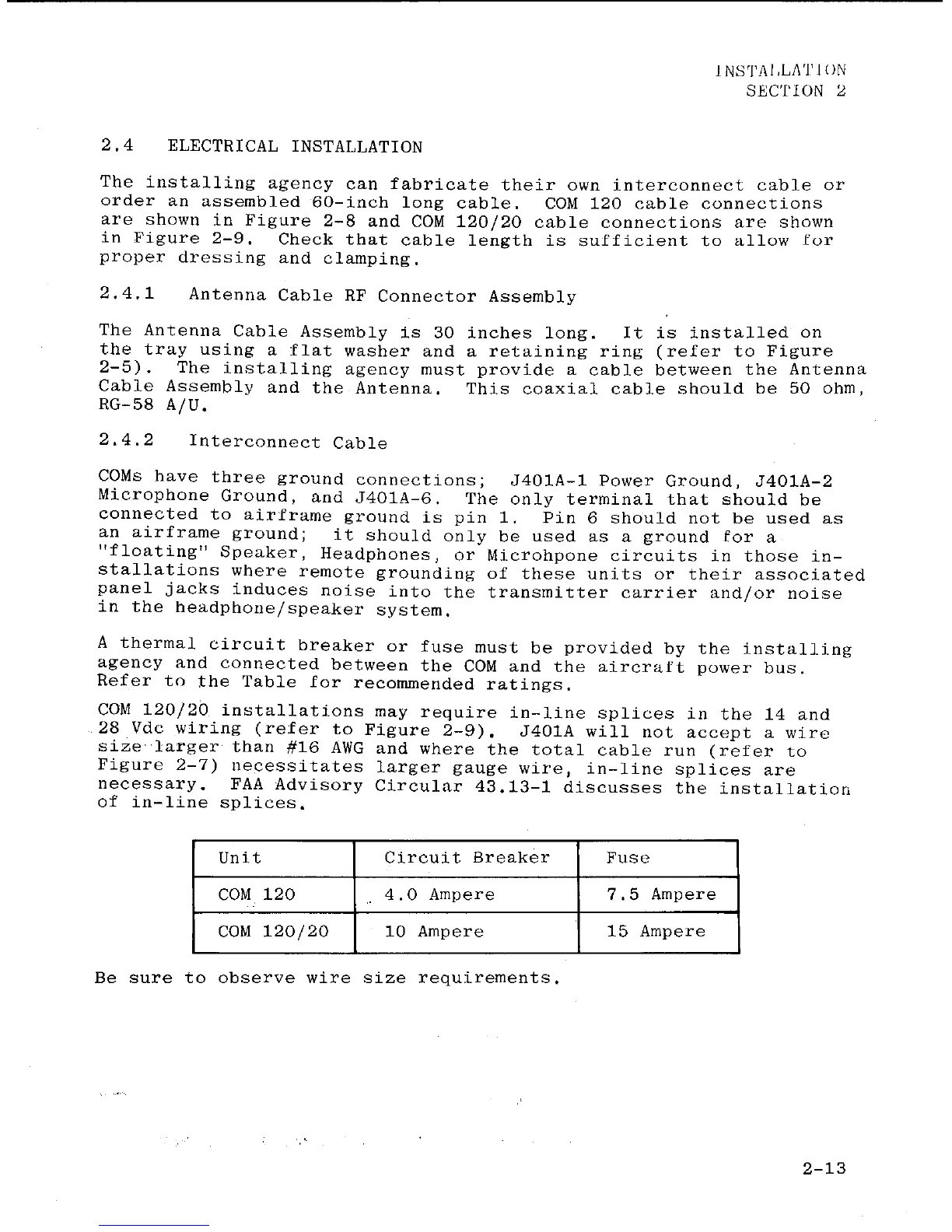 Narco Avionics COM 120 TSO - Electrical Installation; Interconnect Cable