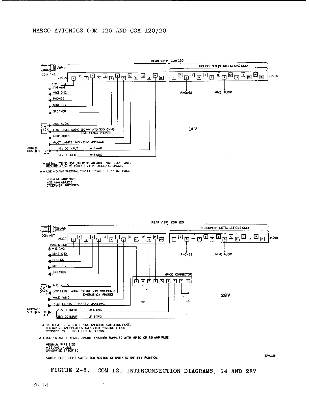 Narco Avionics COM 120 TSO - Com 120 Interconnection Diagrams, 14 and 28 V