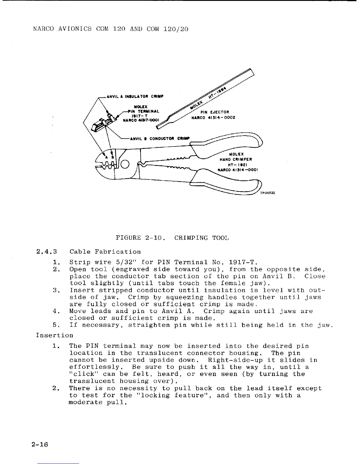 Narco Avionics COM 120 TSO - Crimping Tool; Cable Fabrication