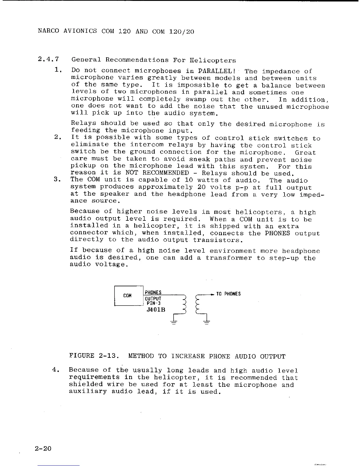 Narco Avionics COM 120 TSO - General Recommendations For Helicopters