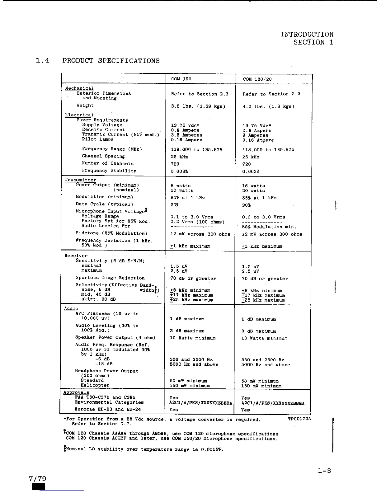 Narco Avionics COM 120 TSO - Product Specifications
