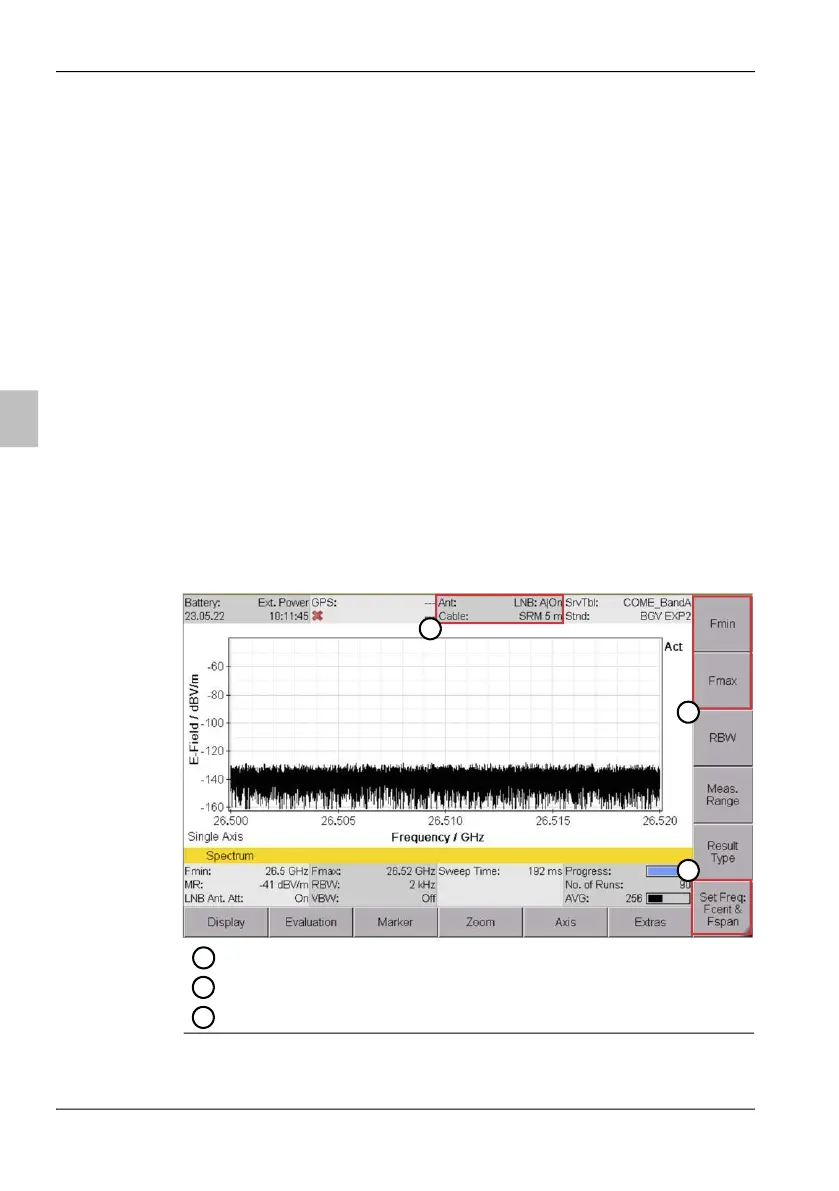 Fmin/Fmax selezionata nel sotto menu Frequenze