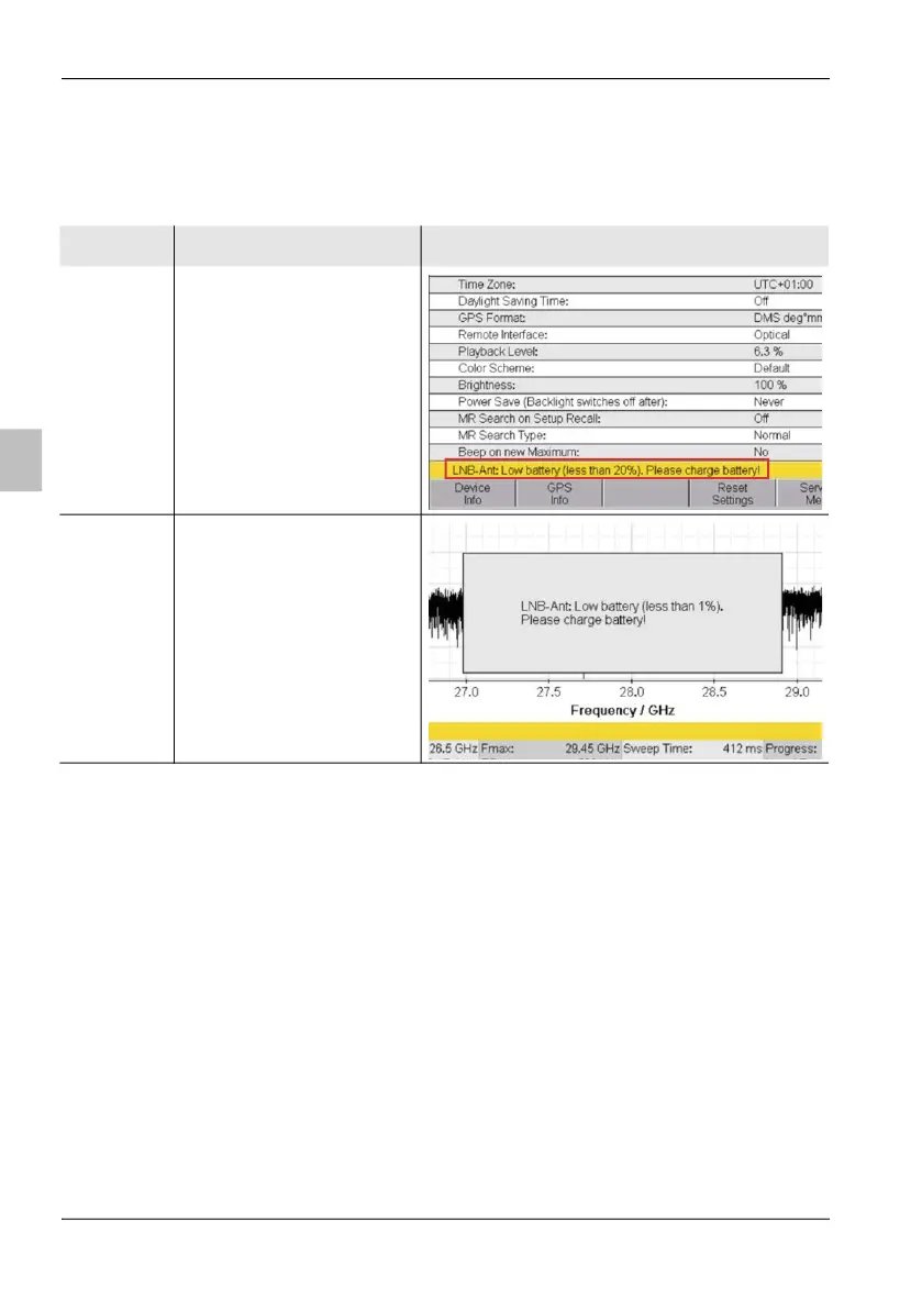 Es werden Warnungen angezeigt, wenn der Akkuladestand unter 20 %