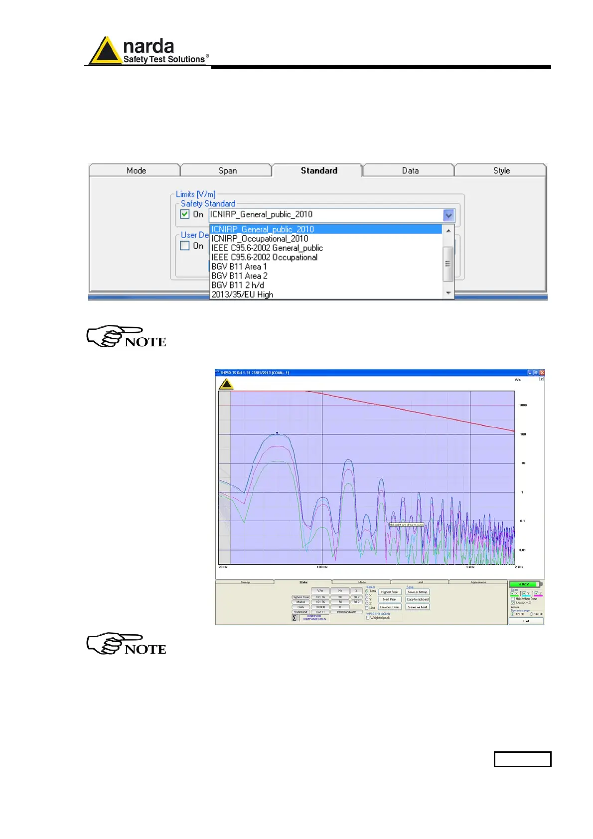 Standard section allows the user to select standard ICNIRP limits, already