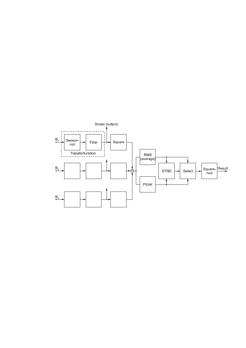 The voltage induced in the measurement coils (field probe) is evaluated in