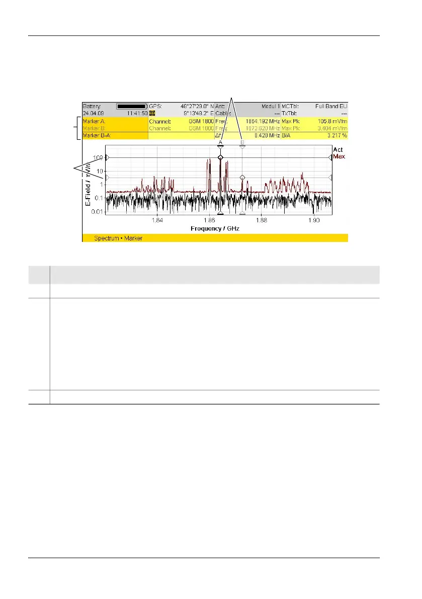 • Marker...: Marker A is active (black lettering), Display of difference B-A