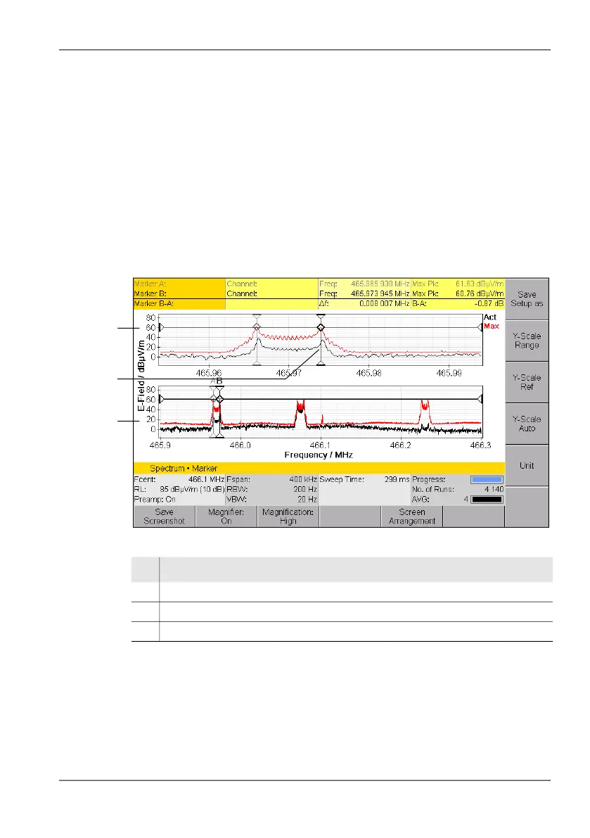 2. Set the active marker to the desired frequency and press the Display
