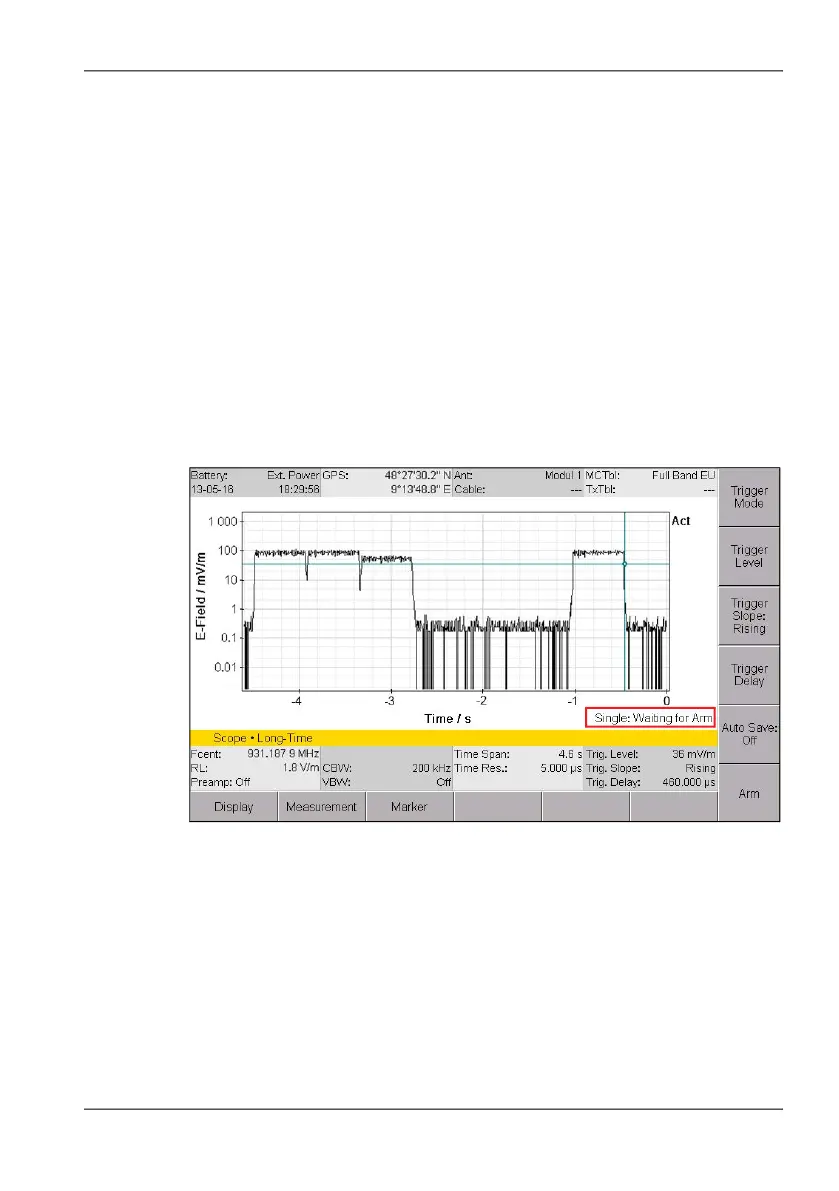 Figure 44: Time Domain (Scope) operating mode, trigger function Single selected