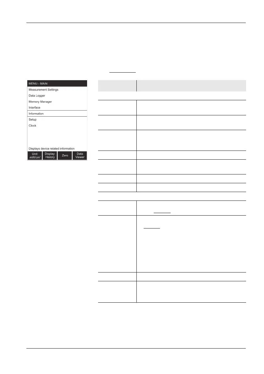 Information Display information about the instrument and