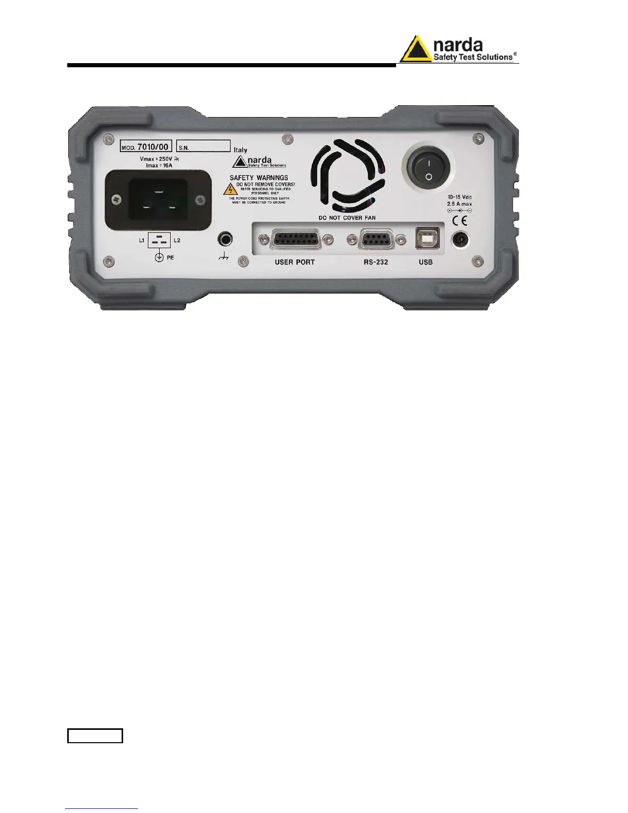 - Mains socket to connect the EUT to the mains through the internal LISN.