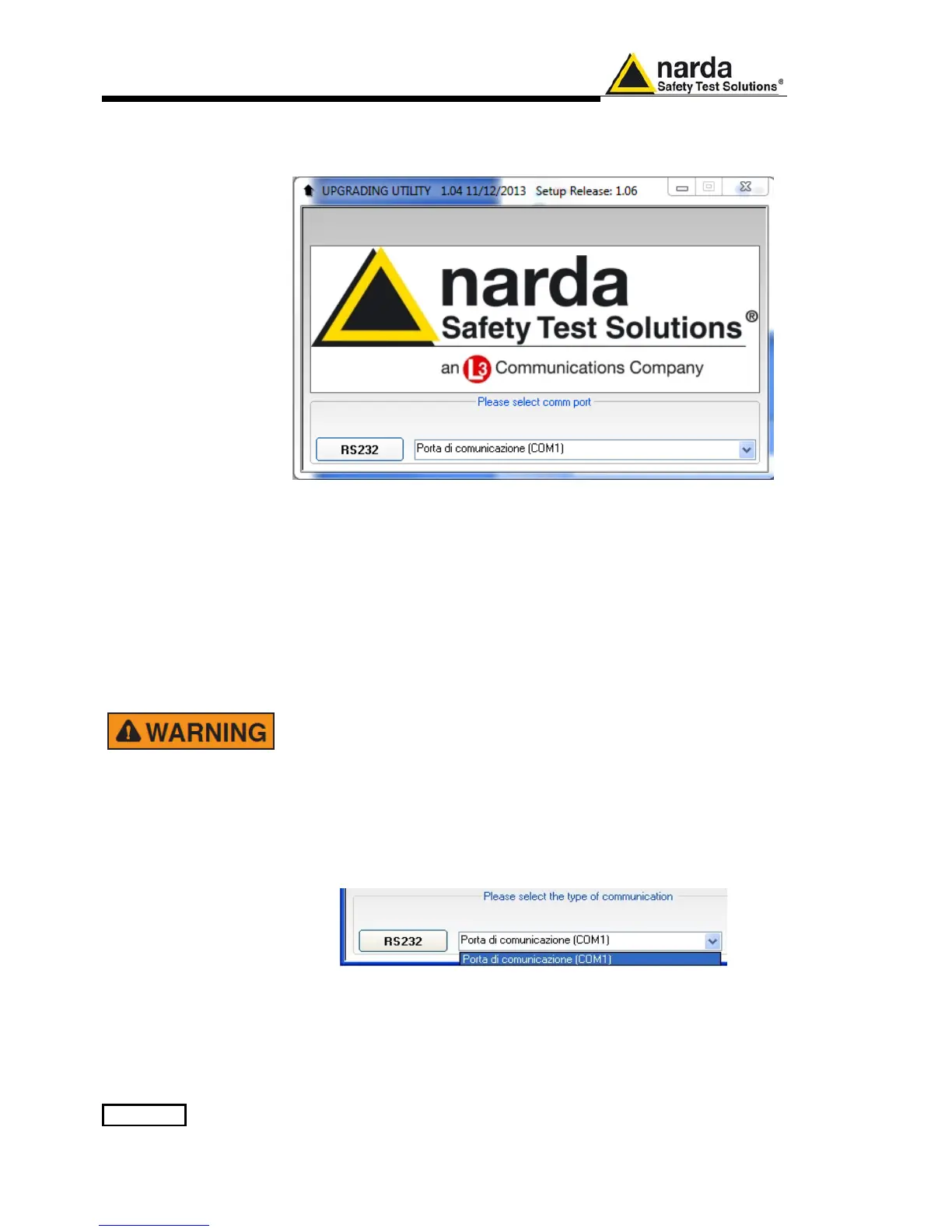 Press RS232 button or Enter key to set the com port.