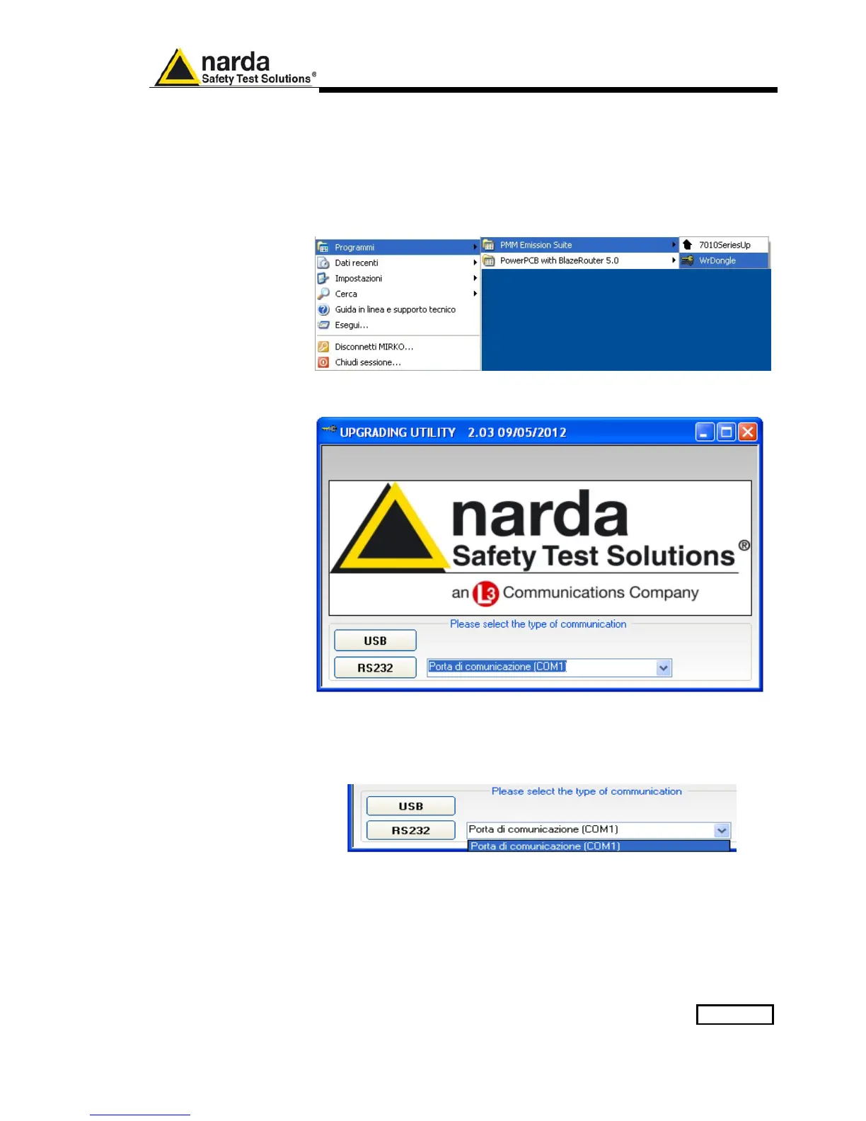 In case of RS232 communication, choose the COM port from the pulldown