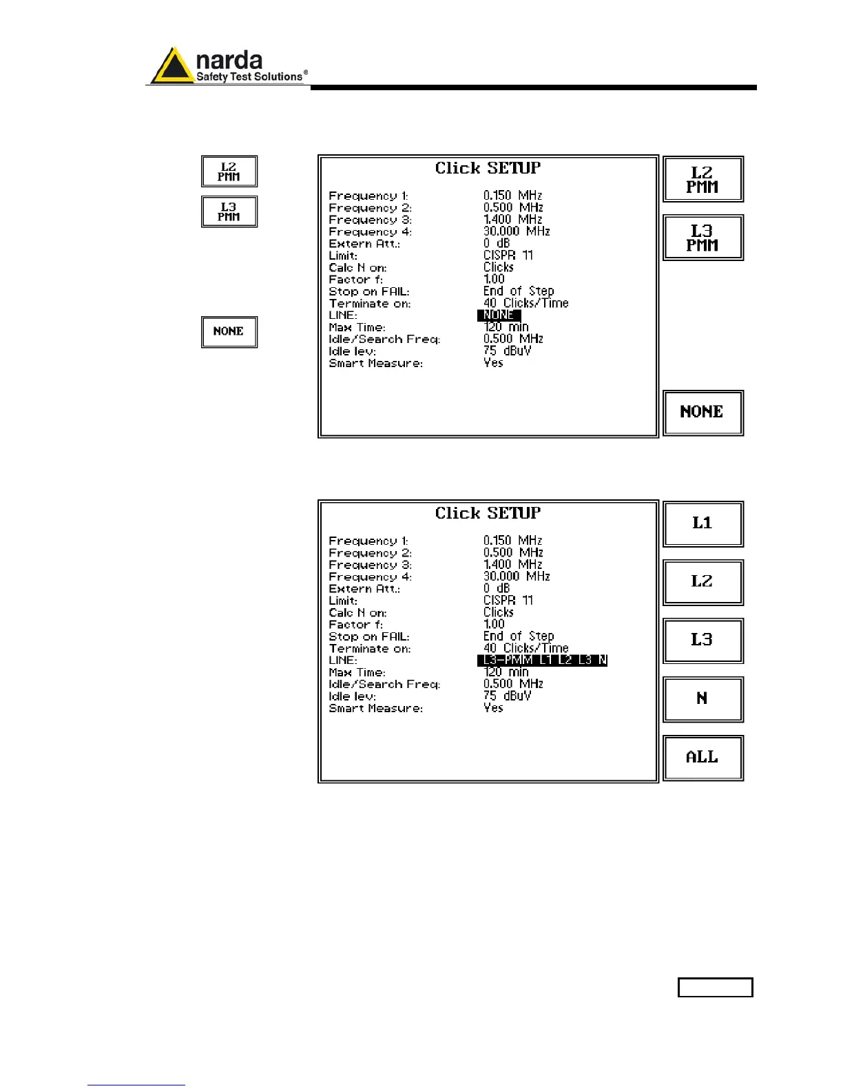 define if to run the test on a specific Line (L1, L2, L3, N)