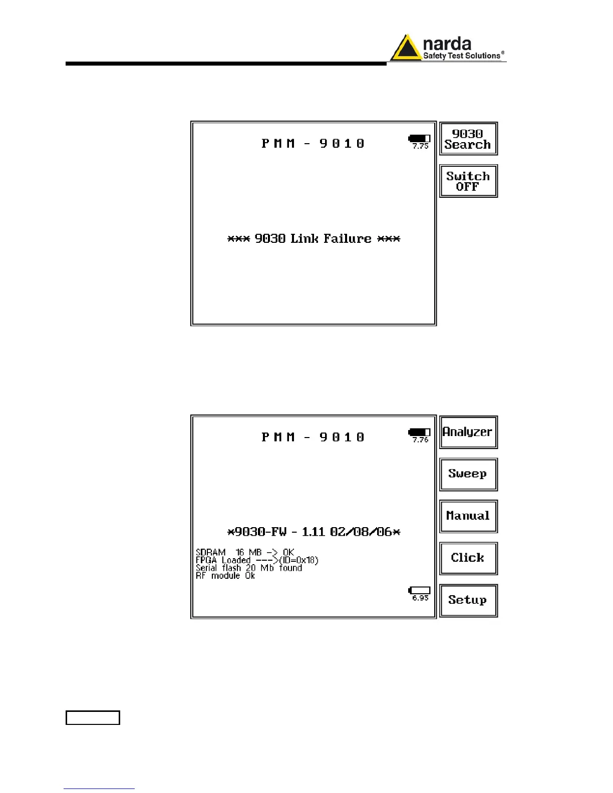 battery too low) and switch ON again the PMM 9030/9060/9180.
