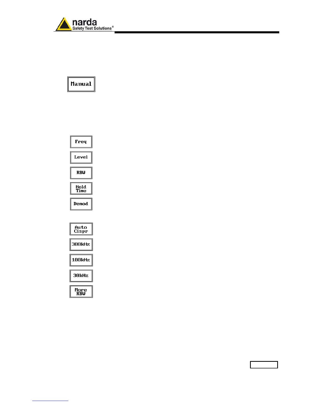 The three larger filters are selectable from the first RBW screen, and pressing