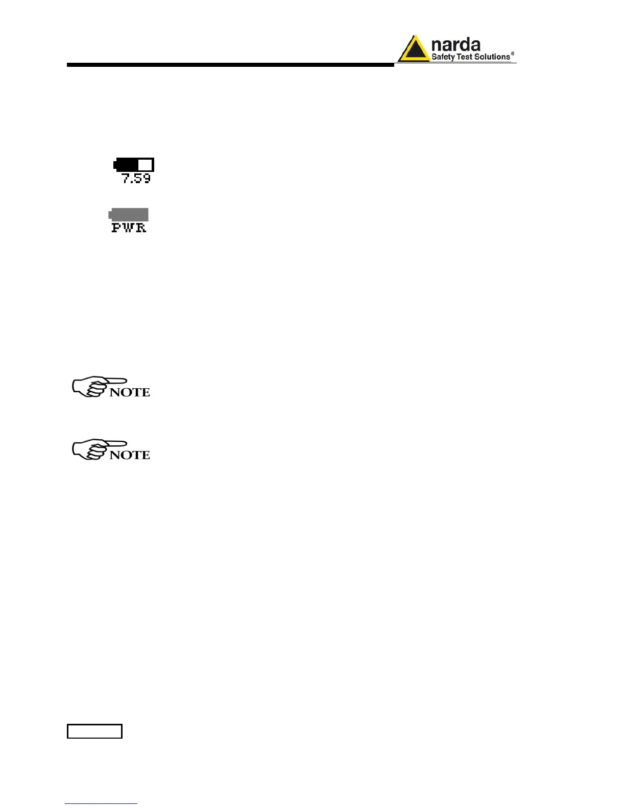 drops below 7,0V to warn the Operator that the instrument is running