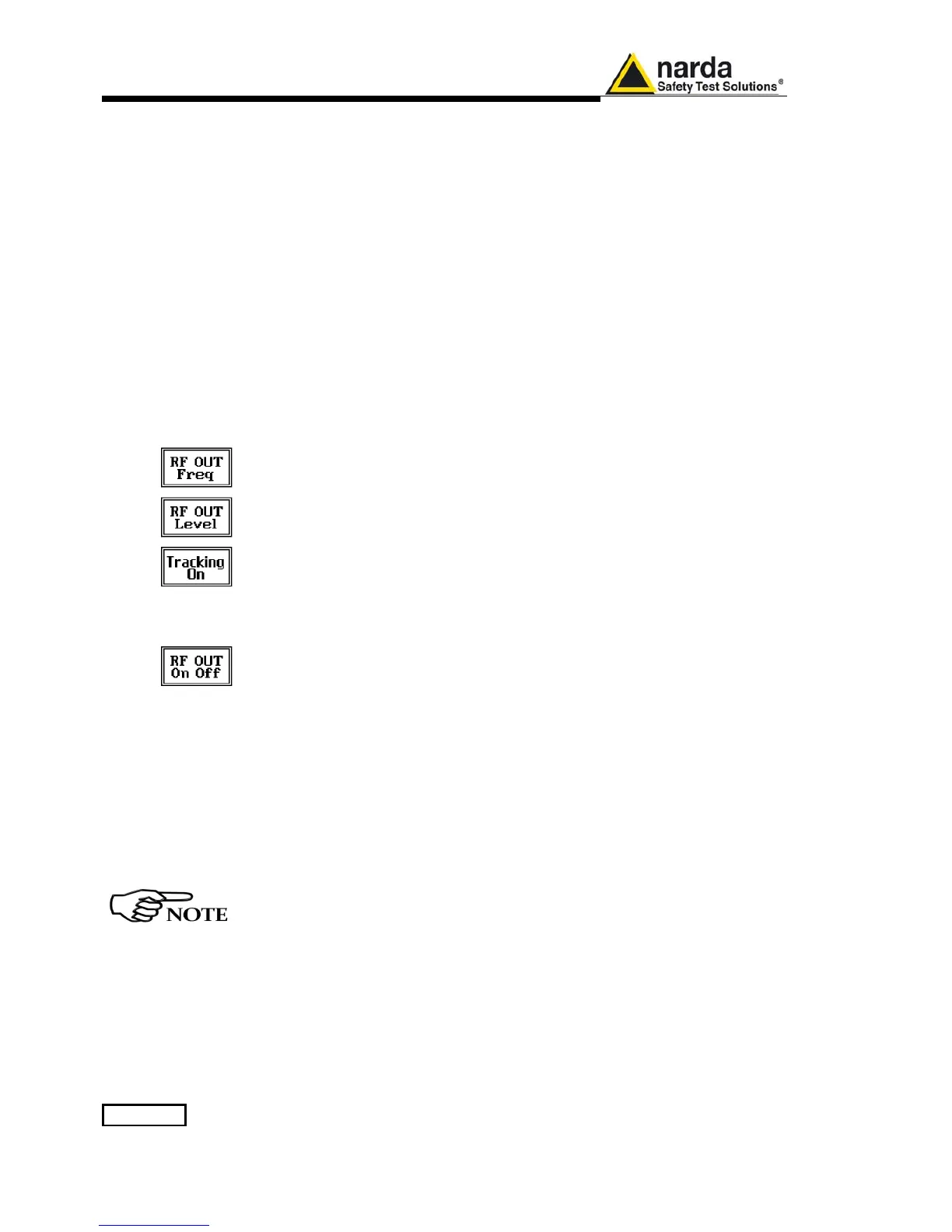 Pressing the RF OUT button the receiver enters the Tracking generator