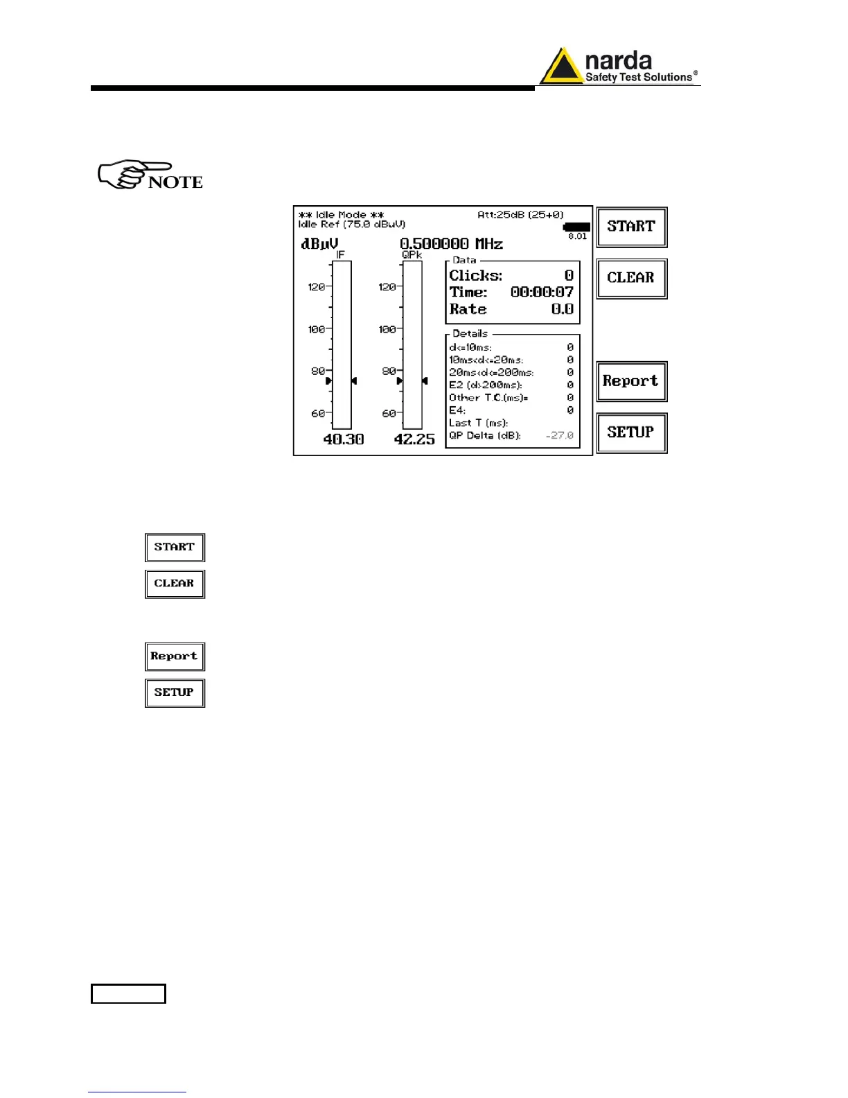 • Clear: cancel and reset all data to start an idle test;