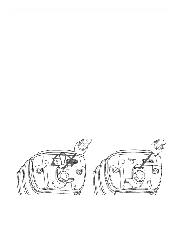 On the monitor, the mounting loop of the safety lanyard is threaded through
