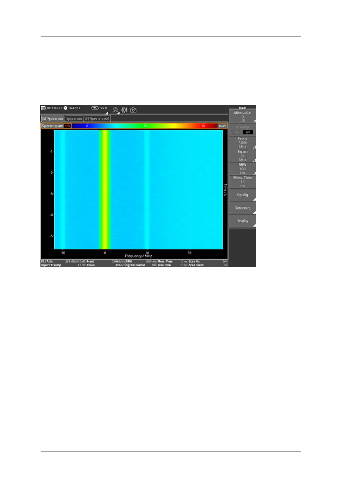 RMS, +Pk and -Pk are available as detectors. Detectors compress the high-speed real time