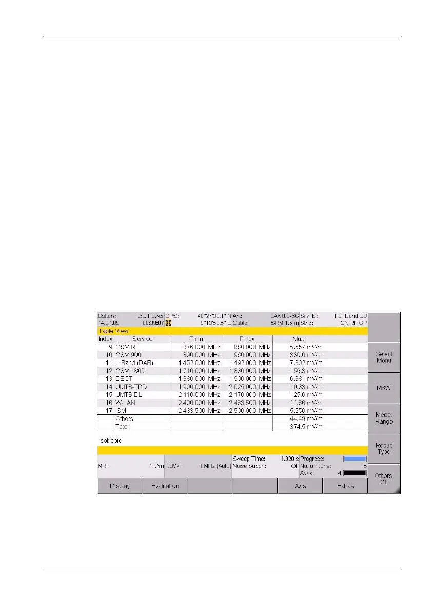 The field strengths of the services not selected in the service table can be