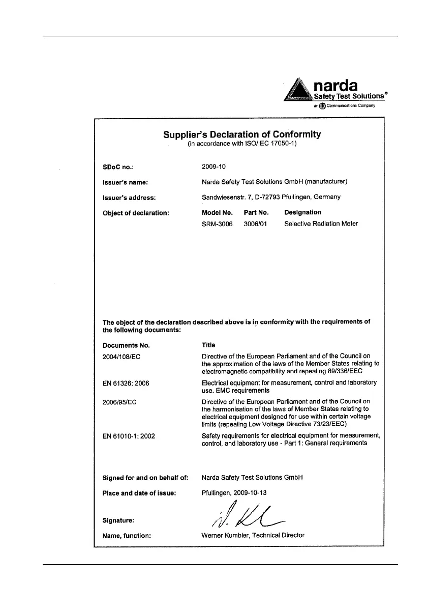 NARDA SRM-3006 - Declaration of Conformity