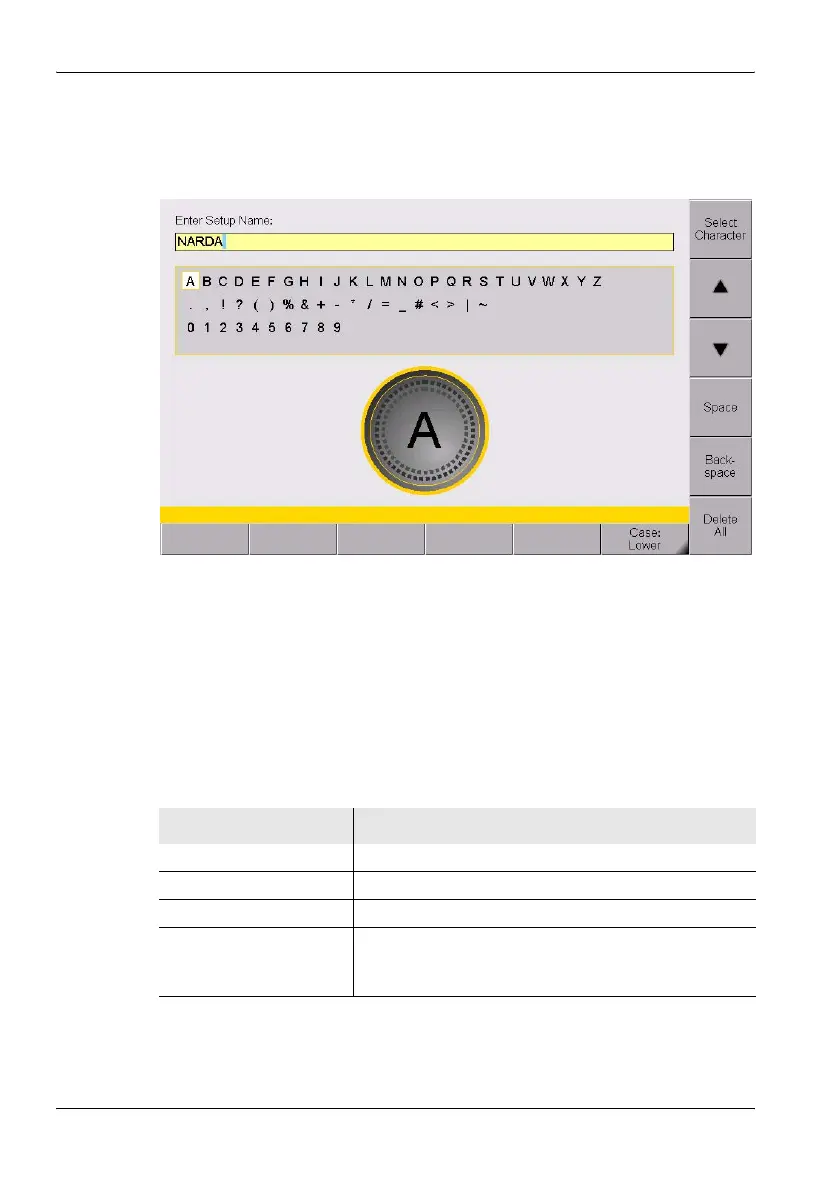 1. Use the rotary control to select a character from the character field.