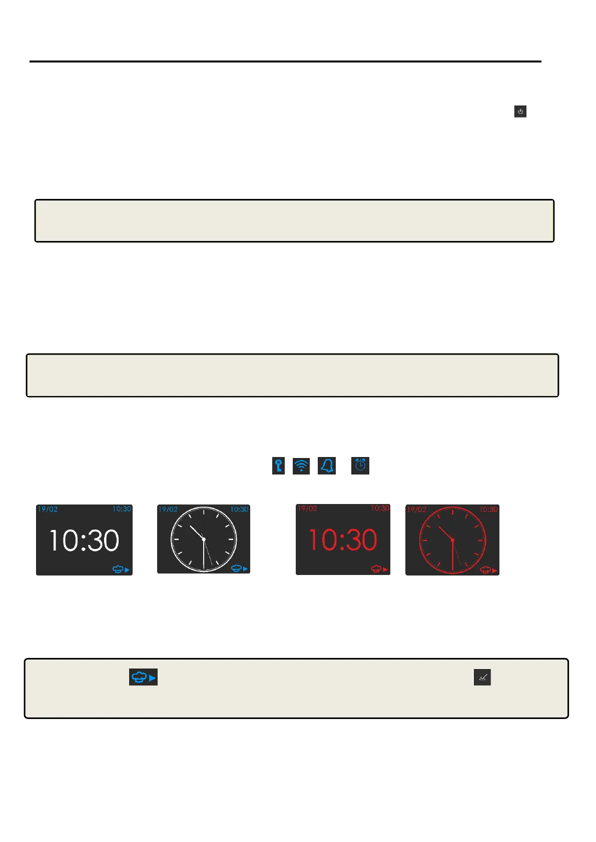 The screen will be black and empty when the device is OFF. By long ( 1 sec) pressing of the