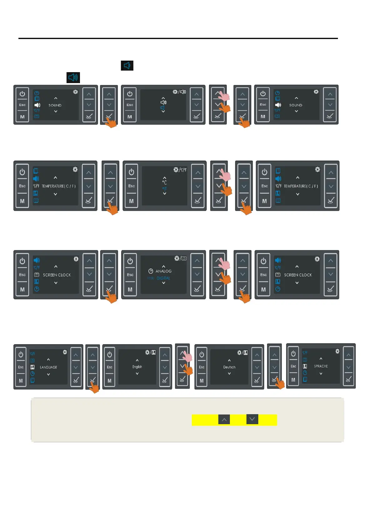 may select another item to be adjusted using buttons or and confirm with or